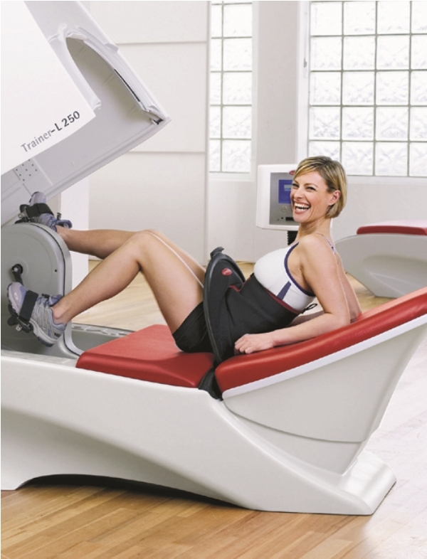 Trainer S-120 beschleunigt das Blut und fördert den Transport von Fettsäuren indem es hohen und niedrigen Druck auf die untere Körperhälfte abwechselnd und in Kombination ausübt. Es ist sowohl Therapie- als auch Trainings-Verfahren, ausgestattet mit einer komplexen Computer Software und einem vollständig regulierbarem Trainingsrad.