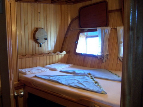 Wir übernachten in Doppelkabinen mit privater DU/WC auf Motorseglern, je nach Teilnehmerzahl und Kabinenverteilung mit 4 bis 8 Kabinen und mit einer Besatzung von jeweils 3-4 Personen. Frühstück, Mittag- und Abendessen werden von der Crew an Bord zubereitet.
